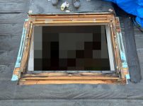ベルックス天窓の交換工事をご紹介 財閥系大手ハウスメーカーで建築された築29年の住宅になります。天窓本体の役物が破損、雨漏りしてくるまで気が付かず😖よくみると部材は屋根から落下して庭にありました。 お客様は、大量の雨水が室内に入ってびっくり!初めて天窓の不具合に気付いたケースです。幸い火災保険適用の修繕工事になります。