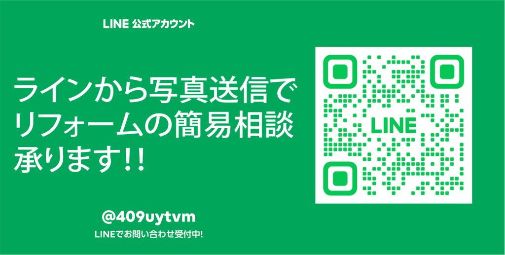 LINEでお問い合わせを受付中! 公式アカウントを友だち追加して、 リフォーム相談したいことがありましたら、 お気軽にお問い合わせください! メッセージをお待ちしています。