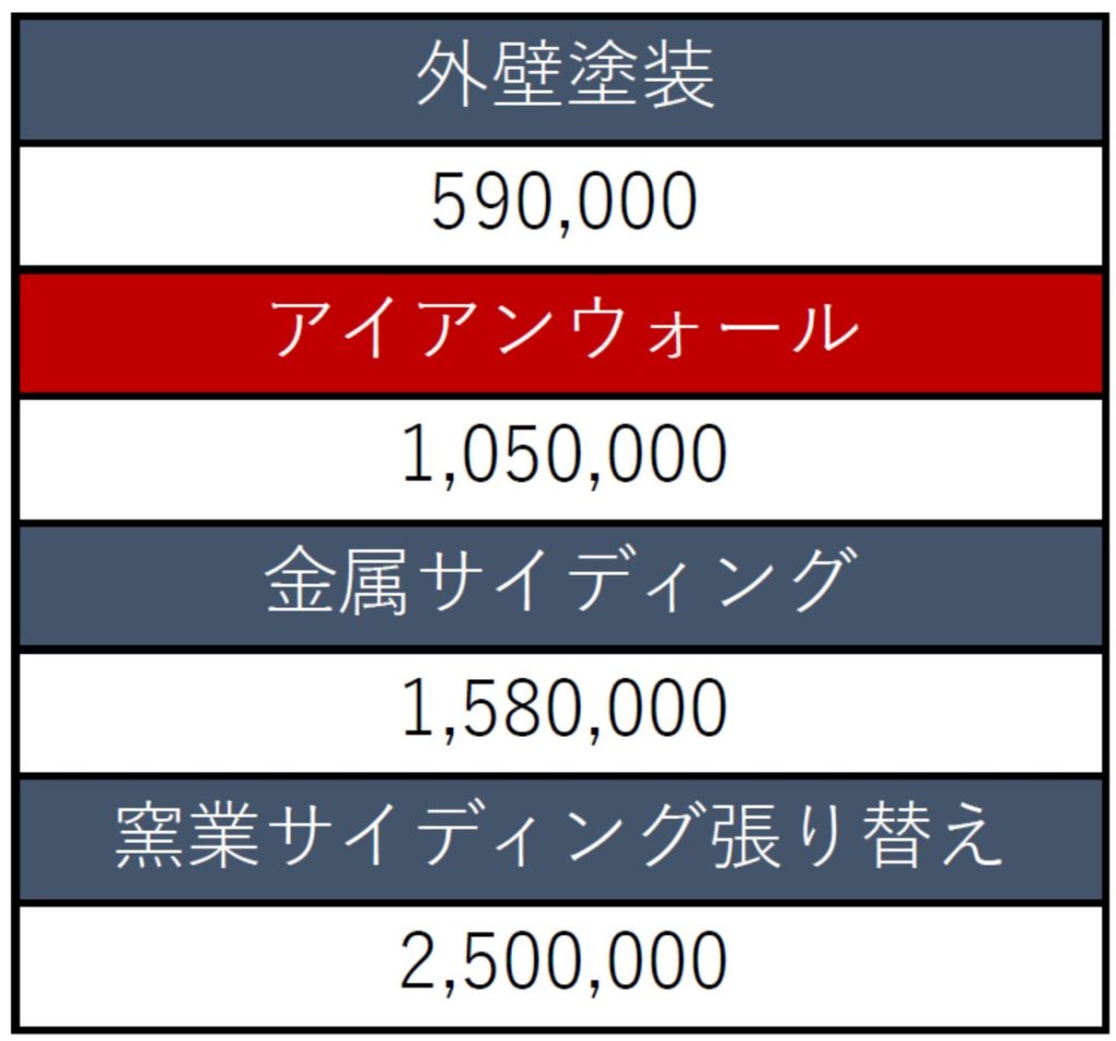 アイアンウォールは、外壁リフォームの第4の選択肢としてコストも耐久性も見た目も良く!お客様にとって一番メリットがあります。