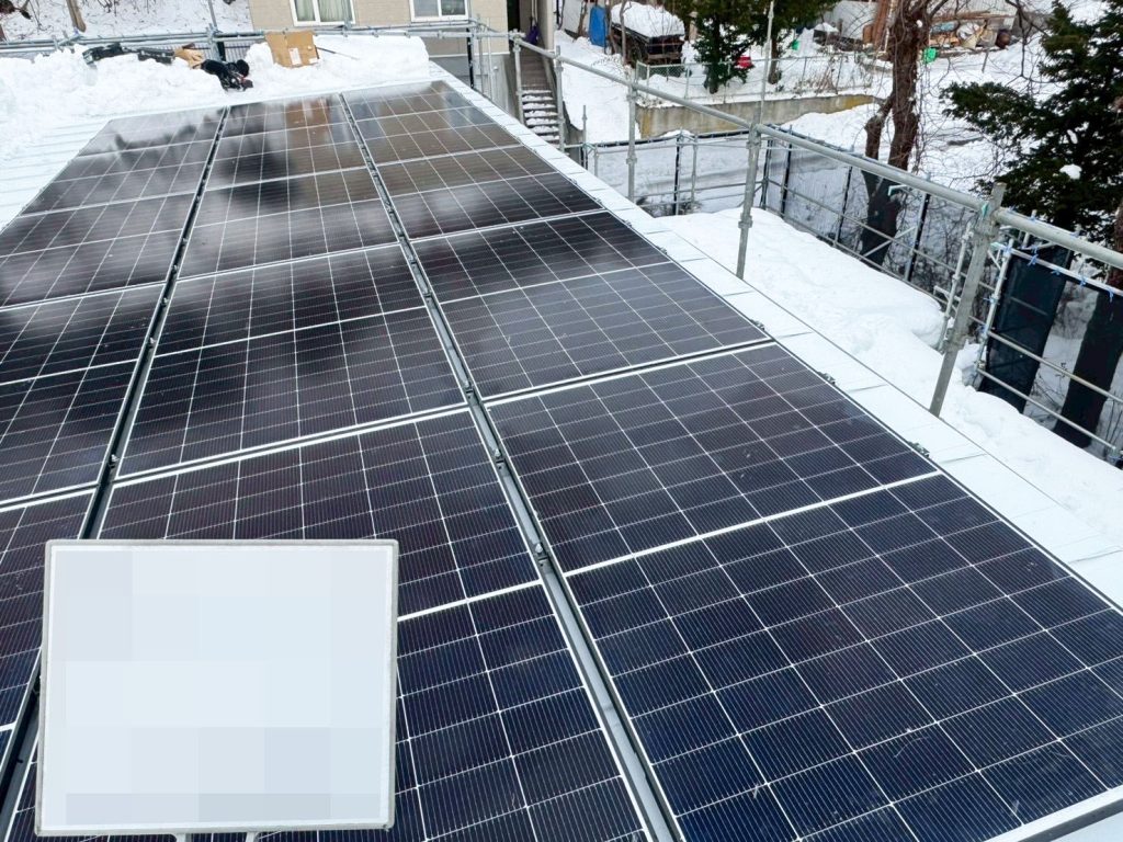 HOME > 施工事例 > 施工事例 太陽光パネル設置工事(札幌市西区K様) 2025年12月17日 ハウスメーカーの新築工事・太陽光発電システムの販売・施工実例をご紹介 太陽光パネルの設置 4.5KW(パネル12枚) 屋根工事+太陽光設置工事も北日本屋根におまかせください! -施工事例 -太陽光システム