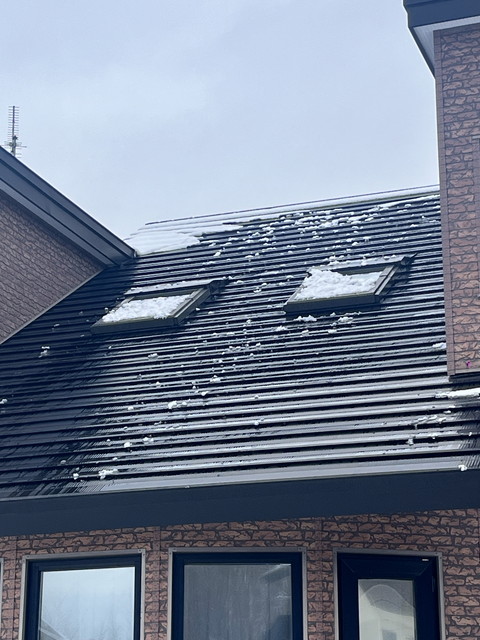 HOME > 施工事例 > 施工事例 札幌市南区(U様)天窓交換・屋根リフォーム 2025年12月25日 雪庇が落ちて天窓が破損 天窓のガラスが割れている状態 (2025年1月)屋根にできた雪庇が落ちて天窓のガラスが破損!左側の天窓交換+屋根葺き替えで保険金100万円 今回、右側の天窓も交換して屋根葺き替えと塗装工事(175万円) 即対応、保険金が適用されて実質75万円で屋根全体のメンテナンスができて大変、助かりました!U様(50代) -施工事例 -天窓, 屋根工事